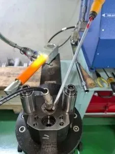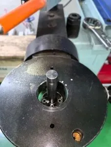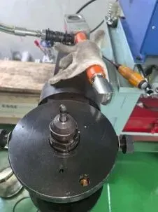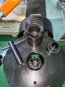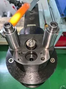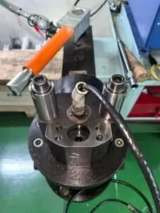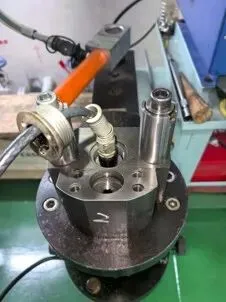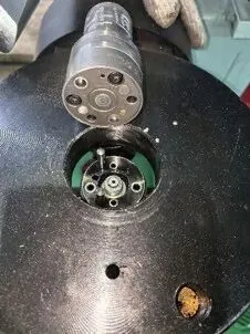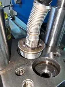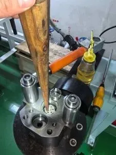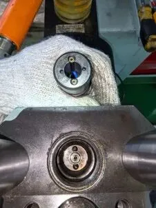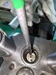 旋转台架,从下方压入装好后的先导阀,这样做能确保针阀芯不会掉落丢失,接着轻轻敲击先导阀,使其完全落位。