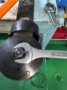 用46#扳手逆时针旋转锁紧螺帽,向上顶动专用工具时,先导阀也被同时带动,拆了下来。
