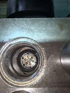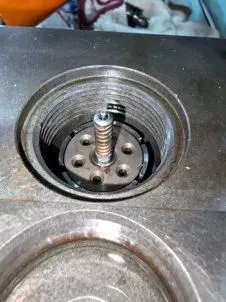 推杆组件被顶上来后,便可以拿出电磁阀了,但此刻需特别小心电磁阀下方的小弹簧和阀芯。