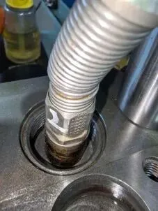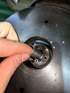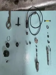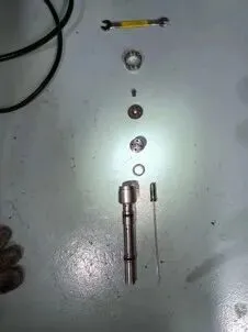 拿下锁紧螺母后,取出内部的垫圈,长时间使用燃油,推杆会在导管内卡住,不易取出,此时需要点耐心和方法。