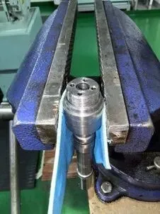 拆卸推杆锁紧螺母时,需要将推杆导套夹在钳台上,夹持部位需要做好防护,否则夹持过紧会夹伤推杆导套。