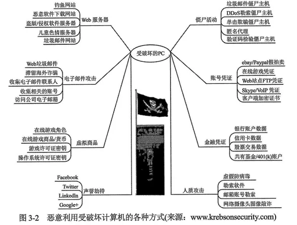 计算机辅助犯罪(Computer-assisted Crime)指使用计算机作为工具帮助实施犯罪。以计算机为目标的犯罪(Computer-targeted Crime)是指计算机成为专门针对其自身(及其所有方)实施攻击的受害方。在最后一类犯罪中,计算机不一定是攻击方或受害方,只是在攻击发生时碰巧涉及其中,这种攻击称为“计算机牵涉型攻击(Computer Is Incidental)”。