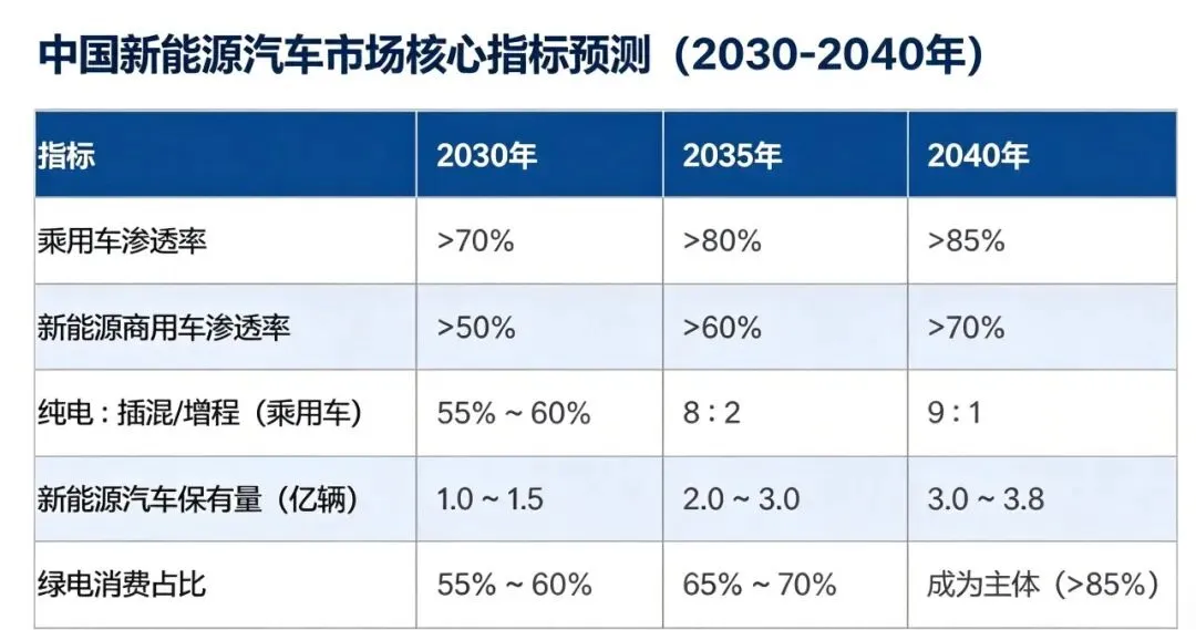 2040年 | 3亿 ~ 3.8亿辆 |