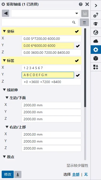 X、Y:轴线代码,组数必须与坐标一致