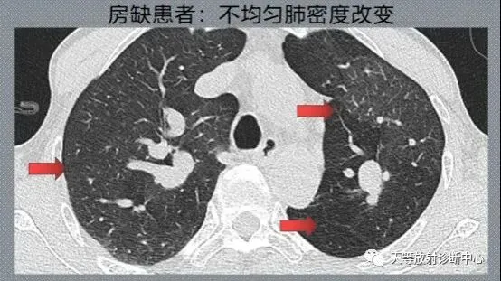 图3,房缺患者,肺动脉高压导致马赛克灌注。