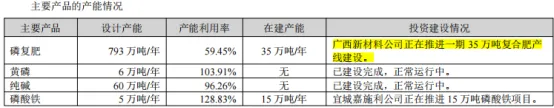 截至报告披露日,公司拥有磷复肥年产能超940万吨,产品线覆盖水溶肥、液体肥、增效肥、缓释肥、高塔尿基、高塔硝基、喷浆硫基、喷浆硝硫基、高浓度氯基、高浓度硫基、中低浓度复合肥、有机-无机复混肥、生物菌肥、水溶性及工业级磷酸一铵等产品。