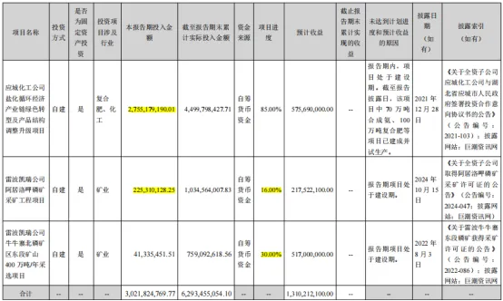 雷波凯瑞公司阿居洛呷磷矿项目累计实际投入金额包含购买阿居洛呷磷矿价款7.62亿元。