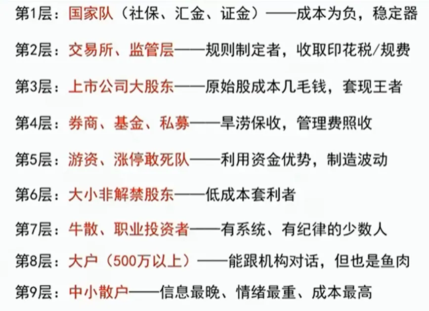 看清这个生态位,不是让你绝望,而是让你明白,要想生存,必须有不一样的东西,这个东西,叫认知。我们是金字塔的底层,不是顶层。这意味着我们不可能拥有信息优势、资金优势、制度优势。所以,不要试图用信息去和信息优势者对抗,不要试图用资金去和资金优势者对抗。你唯一的优势,可能是时间、耐心、可以花精力去了解规律并保持对规律的敬畏。纸上得来终觉浅,绝知此事要躬行!