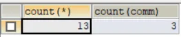 -- (2)显示雇员总数,以及获得补助的员工数。-- 		思路:获得补助的雇员数,就是comm列为非null,就是count(列)-- 		如果该列值为null,不会统计SELECT COUNT(*),COUNT(comm)FROM emp-- (2.1)拓展:统计没有获得补助的雇员数SELECT COUNT(*),COUNT(IF(comm IS NULL1NULL))FROM empSELECT COUNT(*), COUNT(*)-COUNT(comm)FROM emp
