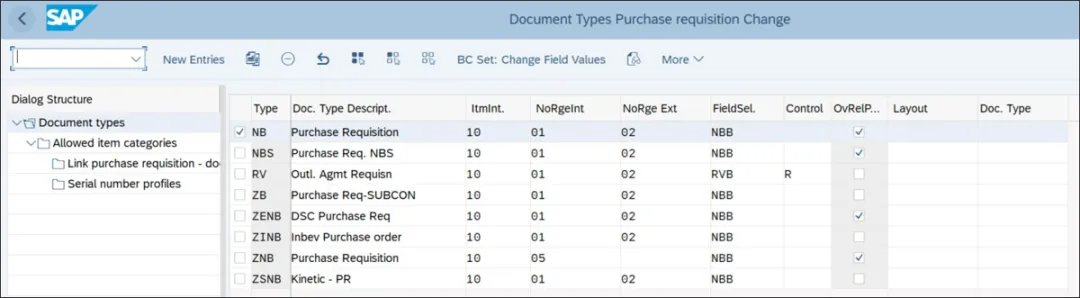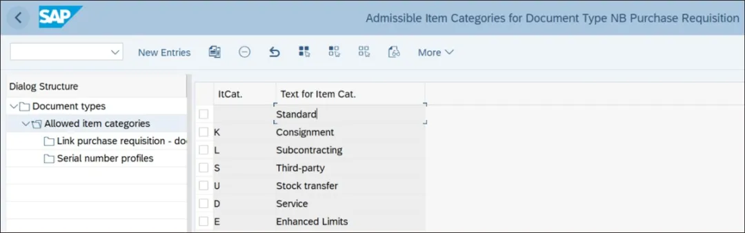 在为第三方流程配置计划行类别之前,掌握采购文档类型设置至关重要。让我们首先深入了解一下 SAP S/4HANA 中的采购申请配置。与销售订单类型一样,采购申请文档类型根据业务需求代表特定的采购流程。标准采购申请、分包和库存转移是最常见的采购流程。可以为每个采购流程创建特定的采购申请类型。要进入此配置步骤,请执行事务代码 SPRO 并导航至“物料管理”•“采购”•“采购申请”•“定义采购申请的文档类型”。下图展示了配置采购申请文档类型的第一步。这控制着采购申请行项目编号的间隔。例如,如果此值设置为 10,则采购申请中的行项目编号将以 10 为间隔创建(10、20、30 等)。要进入编号范围配置步骤,请执行事务代码 SPRO 并导航至“物料管理”•“采购”•“采购申请”•“定义采购申请的编号范围”。您也可以通过执行事务代码 SNRO 直接进入此配置步骤。在此配置步骤中,可以针对编号范围对象 BANF 定义内部和外部编号范围。下图展示了内部和外部编号范围的配置。这控制着采购申请的外部文档编号。对于外部编号范围,将设置“外部”指示符。字段选择键代表采购申请的布局,包括必填字段、可选字段和显示字段。NBB 是采购申请文档的标准屏幕布局。此字段对不同类型的采购申请进行分类,如标准采购、库存转移、分包等。此指示符控制采购申请的释放。如果设置了此指示符,采购申请的所有行项目将一次性释放。采购申请文档类型配置的下一步是将允许的项目类别分配给文档类型。要进入此步骤,请从文档类型列表中选择一个文档类型,然后双击“对话框结构”中的“允许的项目类别”。下图展示了采购申请文档类型 NB 允许的项目类别。最佳实践是将所有标准采购项目类别分配给标准文档类型 NB。这为采购人员的采购流程增加了灵活性。采购人员可以使用此文档类型。为每个采购流程创建特定的文档类型;可以为特定文档类型向某个组或个人授予必要的访问权限。通常,计划人员有权创建库存转移订单。采购申请文档类型配置的下一步是将采购申请文档类型允许的项目类别组合与采购订单文档类型和允许的项目类别组合进行关联。此配置控制参考采购申请创建采购订单、报价请求和框架协议。你若喜欢,点个❤️谢先👇