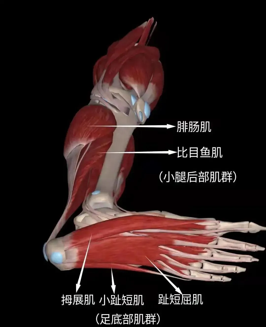 同样会出现小腿前外侧和前后过度支撑引起的跖趾关节痛。踇短屈肌、趾短屈肌收缩使足趾着地,以维持前足与支持面的接触,过度应用会出现足心痛,同时出现脚趾抓地不能放平的现象。