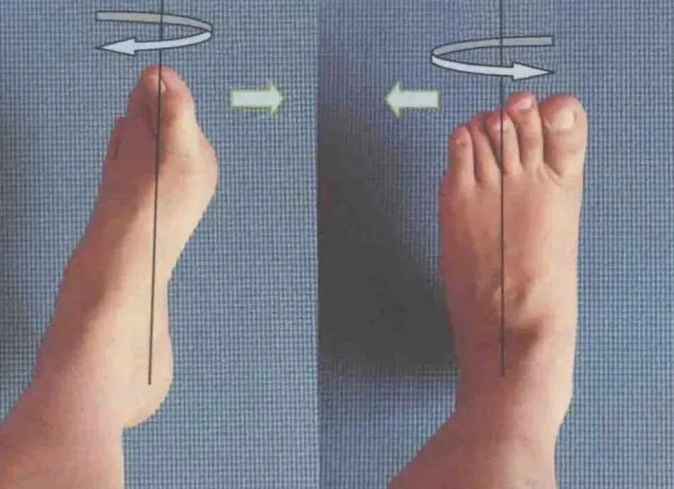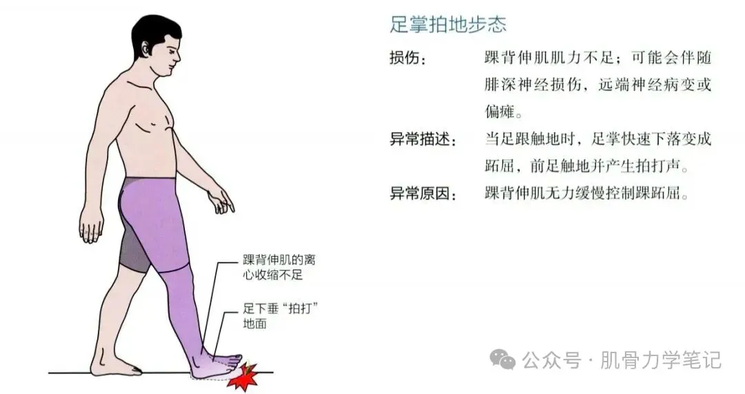 站立位踝出现背屈、跖屈、内翻、外翻、旋内、旋外的动作,导致肌肉异常做功和相应生物力学改变。