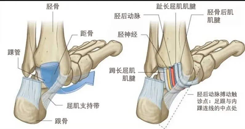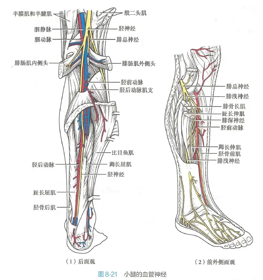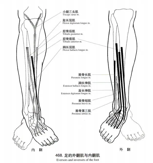 胫骨后肌收缩伴随足内翻的趋势,需要腓骨长肌、腓骨短肌的足外翻拮抗,超过代偿能力会出现小腿外侧痛。