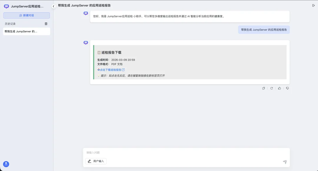 ▲图6 在MaxKB中通过对话生成JumpServer巡检报告