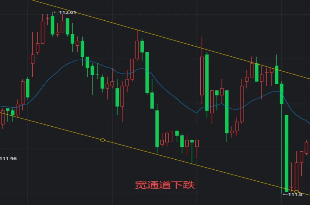 窄通道同样也是一种强趋势,在窄通道中,存在一定的回调,但是回调只持续1-2根K线,随后会继续向着原本的方向移动,在窄通道中,同样应该顺着趋势的交易进行交易,但可以选择在回调的时候进行顺势操作。