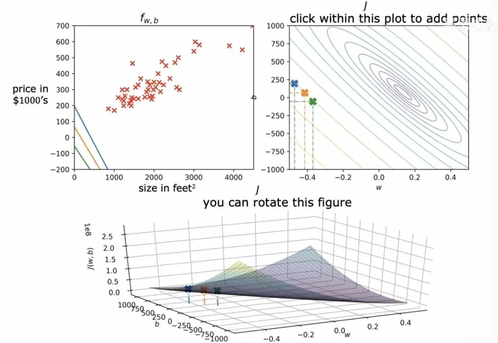 等高线与拟合直线的对应关系显然,靠肉眼盯着等高线图去手动调整参数既不现实也不优雅。我们需要一种系统性的、可以由计算机自动执行的优化方法,而这正是梯度下降即将登场的时候。