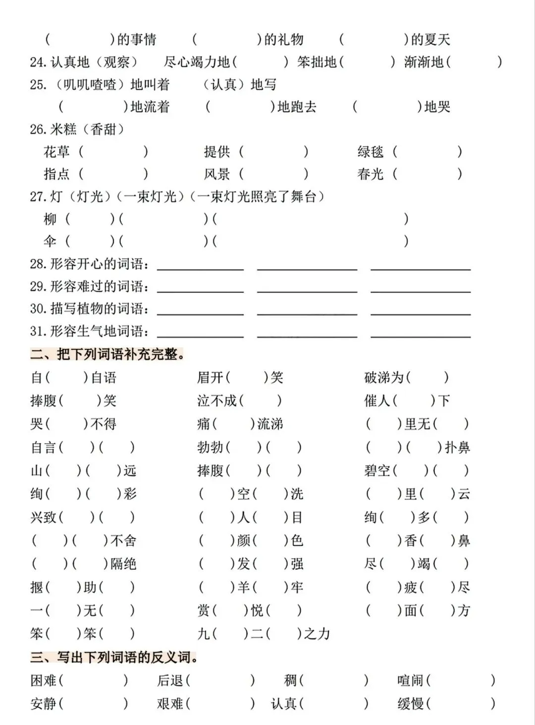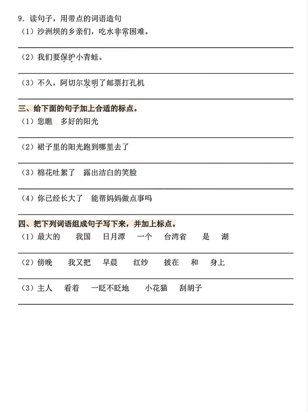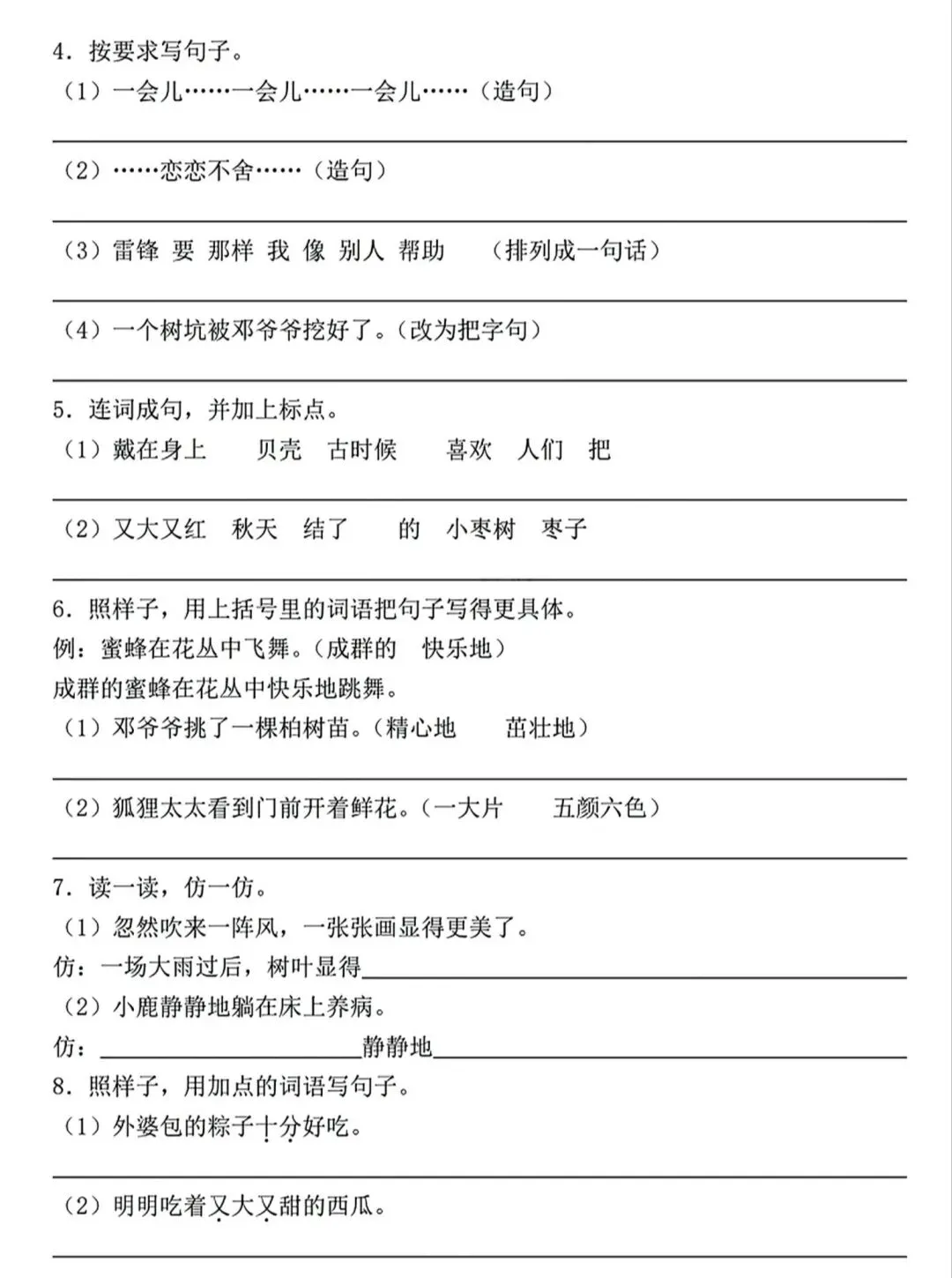 【学习资料分享】二下语文 期中常考的七大重点题专项训练(二、三)