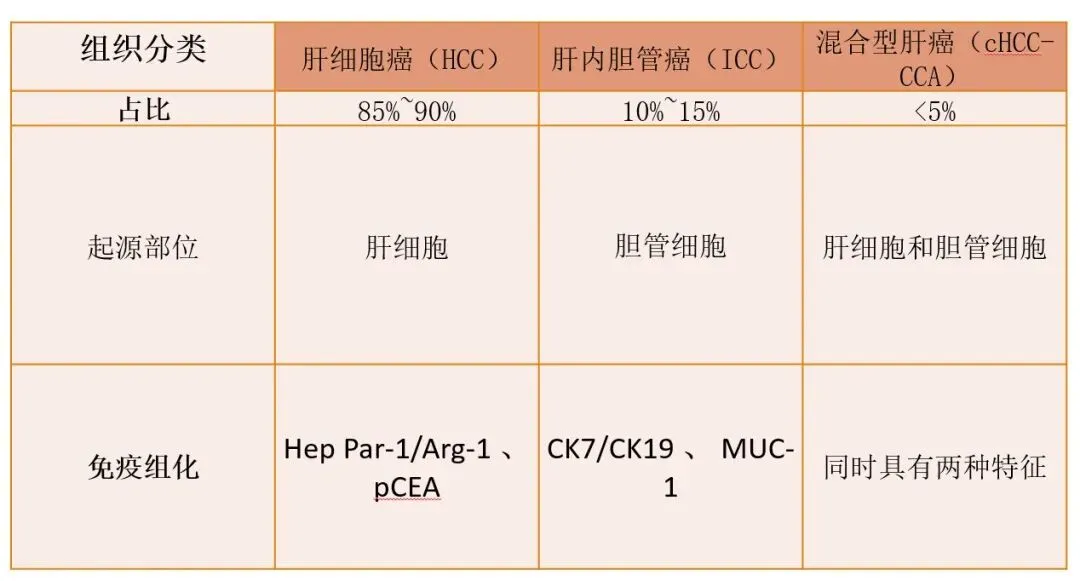 3.混合型肝癌(cHCC-CCA):含有肝细胞癌和胆管细胞癌的成分,极少见。