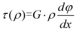 由剪切胡克定律可知,在剪切比例极限内,切应力与切应变成正比,所以,横截面上距圆心为ρ处的切应力为: