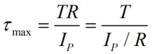 根据切应力公式,得到应力分布特点 :1、切应力沿半径呈线性分布; 2、轴线处的切应力最小,为零;3、外边缘处切应力最大。由式上式可知,在ρ=R,即圆截面边缘各点处,切应力最大,其值为: