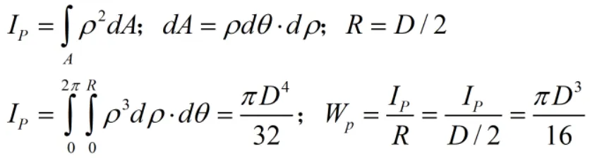 比值IP/R仅与截面尺寸有关,称为抗扭截面系数,并用表示WP表示。于是得到圆轴扭转最大切应力: