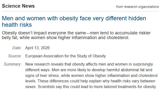 研究者佩克尔博士表示:"男性和女性在面对肥胖时,身体的反应模式完全不同。性别差异本身就是肥胖病理的重要驱动因素。肥胖的治疗方案或需根据性别差异化定制,而非“一刀切”。