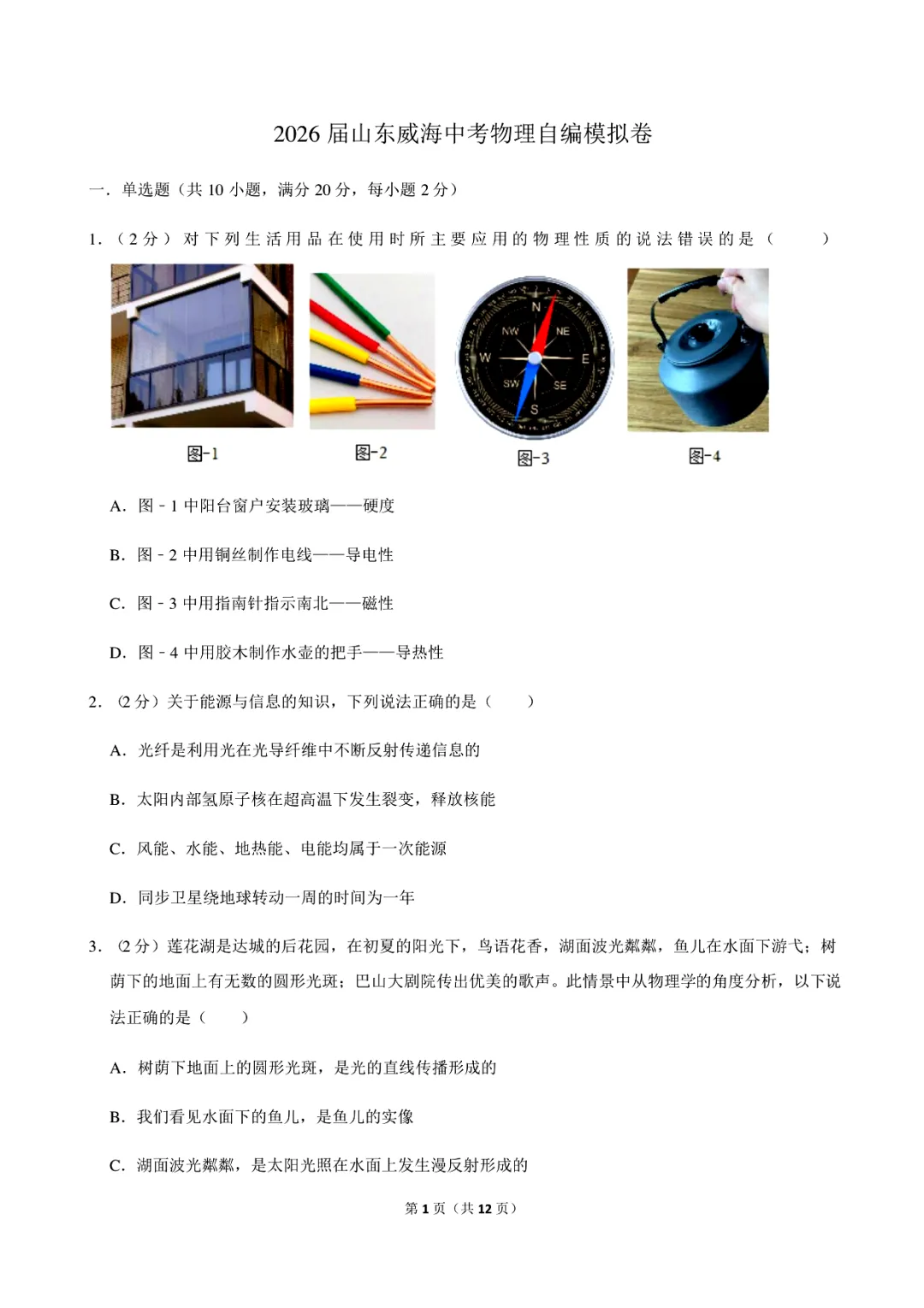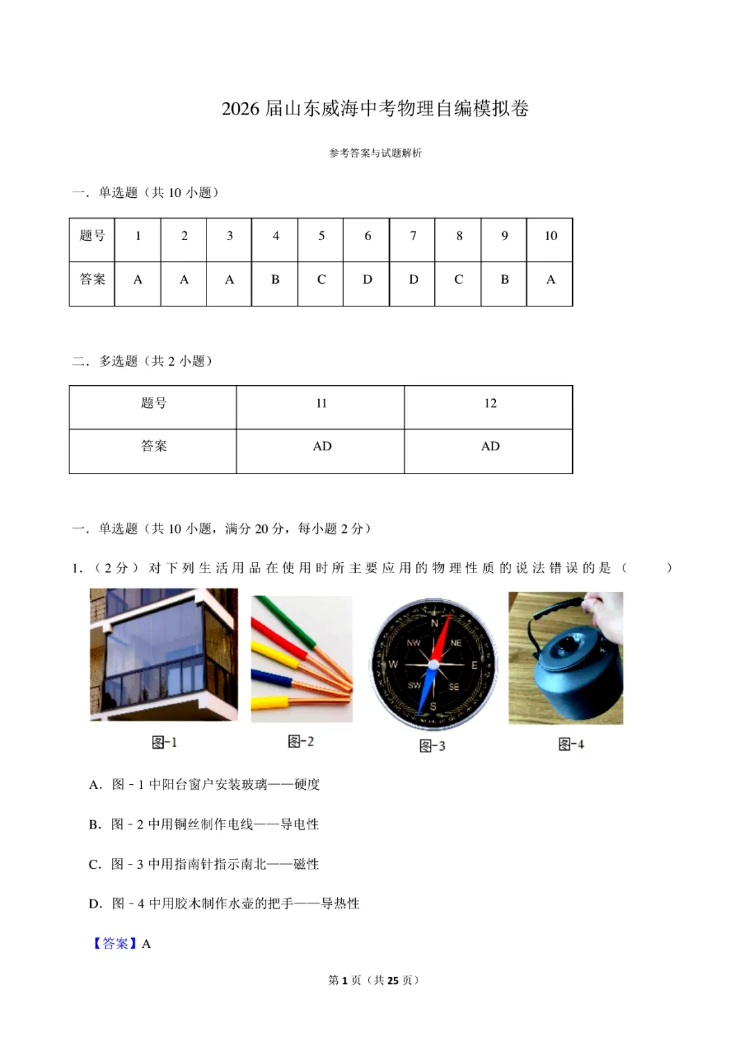 各位宝子们~今天分享这套2026届山东威海中考物理自编模拟卷,我家斌斌亲测好用!📚