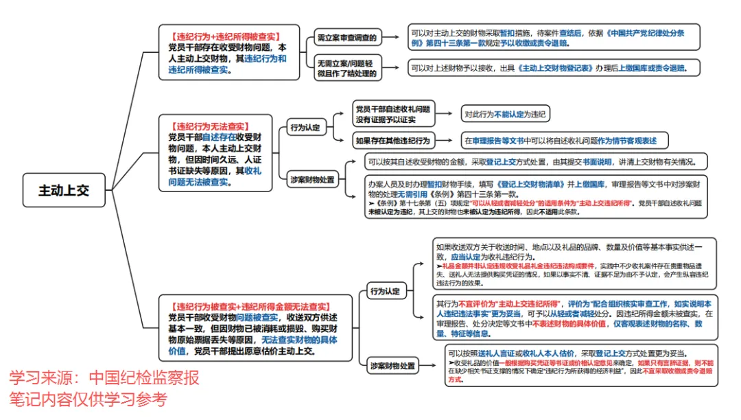 【注意】有意见认为,登记上交是主动上交的一种特殊情形,因此可予以从轻或者减轻处分。笔者认为,《条例》第十七条第(五)项规定可以从轻或者减轻处分的适用条件为“主动上交违纪所得”。党员干部自述收礼问题未被认定为违纪,其上交的财物也未被认定为违纪所得,因此不适用此条款。