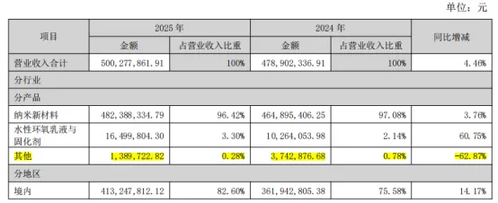 公司主营业务涵盖纳米二氧化硅、氧化铝、水性环氧乳液和固化剂的研发、生产与销售。