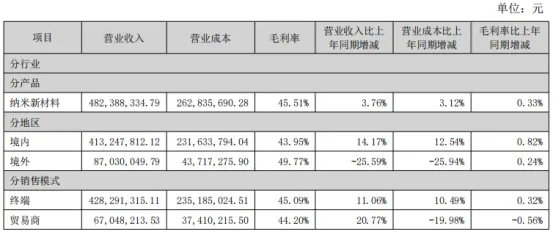 主要就是纳米新材料,营收占比96.42%,产品单一,跟踪产品价格。