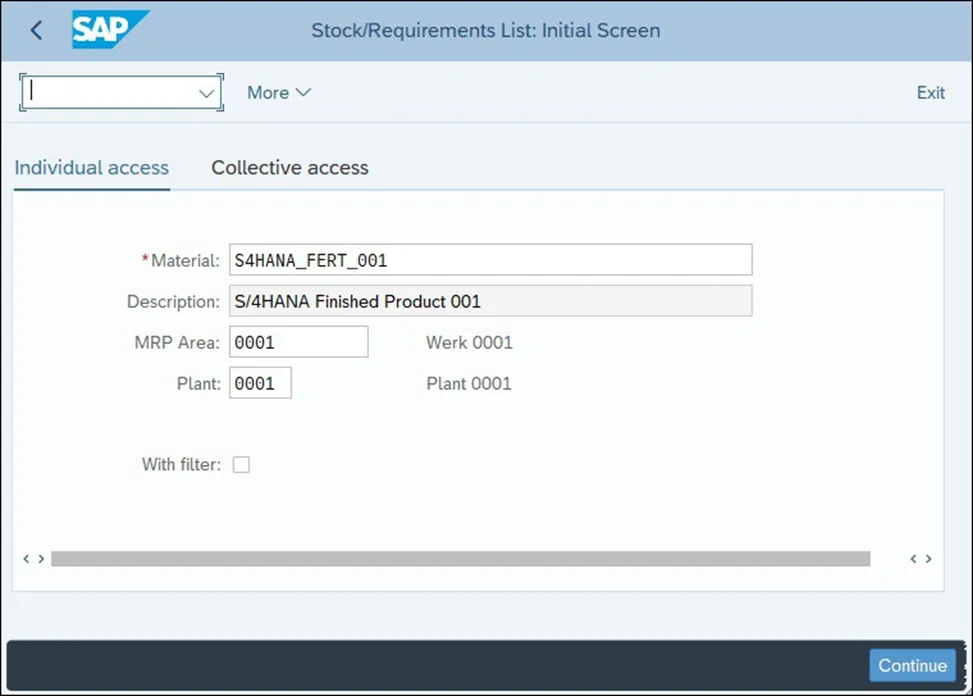 事务码MD04最初是在早期的 SAP ERP版本中为 SAP GUI开发的,但在SAP S/4 HANA中,也可以通过SAP Fiori 启动面板访问它。对于需要每天分析MRP结果的MRP控制者来说,库存/需求列表通常是主要切入点。有两种方法可以访问此事务:- 集中读取,通过它以使用更广泛的选择标准,并选择多种材料。