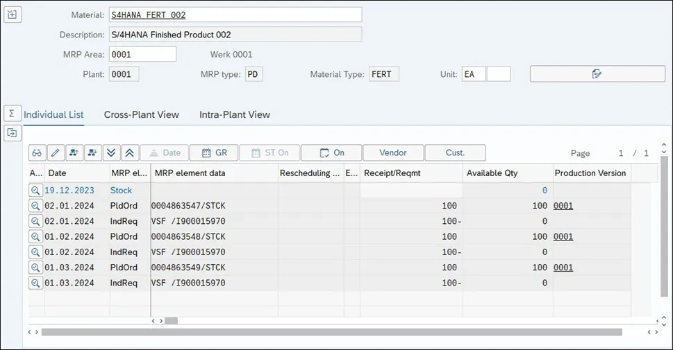 S4 HANA生产模块学习笔记-评估MRP结果(库存/需求列表)1