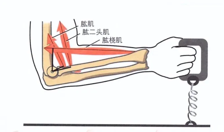 提拉动作(如攀岩):屈肘时肱肌与肩带肌群(如背阔肌)协同,将躯体重心拉近固定上肢。