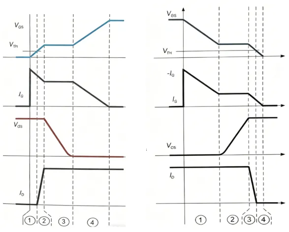 - • 关断: 放电 → 米勒平台( 充电, 上升) → 继续下降