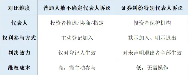 3. 特别代表人诉讼vs普通人数不确定代表人诉讼