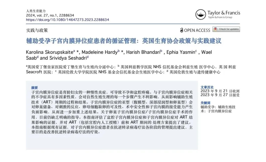 2024 BFS实践指南:子宫内膜异位症患者辅助生育的循证管理子宫内膜异位症是育龄期女性高发的慢性炎症性疾病,以子宫外出现异位子宫内膜组织为核心特征,全球约10%的育龄女性受其影响。该疾病不仅引发盆腔疼痛、痛经、排便困难等一系列生理症状,更与不孕症密切关联——据统计,高达50%的不孕女性合并子宫内膜异位症,其每月自然受孕率仅为2%-10%,远低于正常育龄女性的20%。子宫内膜异位症相关不孕症具有多因素性质,会从卵巢储备、卵母细胞获取、子宫内膜容受性、受精过程等多个环节,全面影响自然生殖生理及辅助生殖技术(ART)的周期过程与最终结局。2024年英国生育协会(BFS)发布的《辅助受孕子宫内膜异位症患者的循证管理》实践指南,基于MEDLINE、EMBASE、CINAHL等数据库2022年3月前的全部相关研究,采用GRADE分级方法制定建议,系统梳理了盆腔子宫内膜异位症对ART结果的影响,为子宫内膜异位症患者ART前、ART期间的规范化管理提供了权威循证参考,核心目标在于优化辅助生育的临床疗效,本文学习并记录供大家参考。一、子宫内膜异位症影响ART的病理机制与临床特征