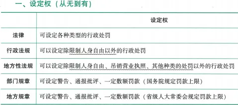 2.不得设定:限制人身自由的处罚;吊销营业执照的处罚;“其他种类的处罚”(即不得创制新类型)。