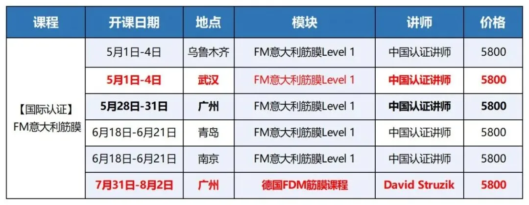 理论需要实践来验证,技术需要 hands-on 来精进。若您希望深入掌握这套源自意大利的筋膜手法(Stecco FM®),亲身感受如何通过触诊定位致密化的协调中心,用滑动摩擦恢复筋膜的弹性与滑动,我们诚挚邀请您参加2026年5月8日在广州举办的FM筋膜手法培训班。课程将系统讲解筋膜手法的力学模型与临床应用,带您从理论走向实操,真正实现“治疗病变的协调中心,而非疼痛的感知中心”。