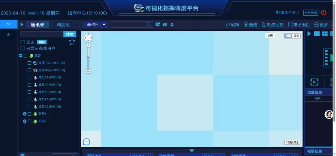 点击右上角调度台就可以跳转到可视化指挥调度平台。