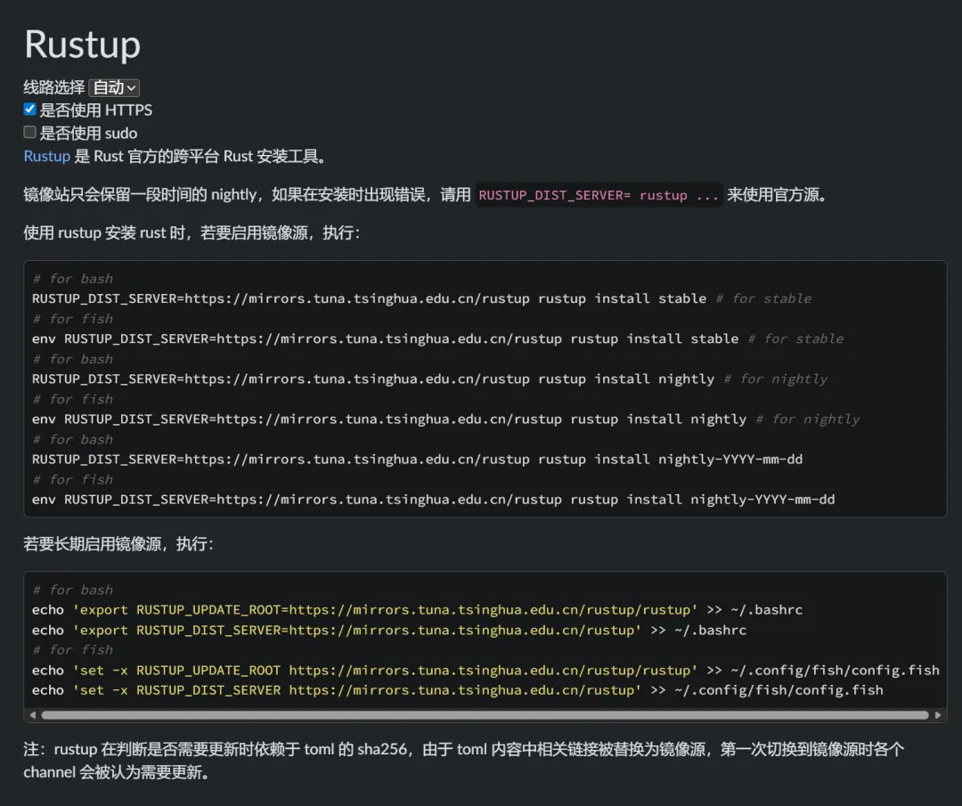 https://mirrors.tuna.tsinghua.edu.cn/help/rustup/