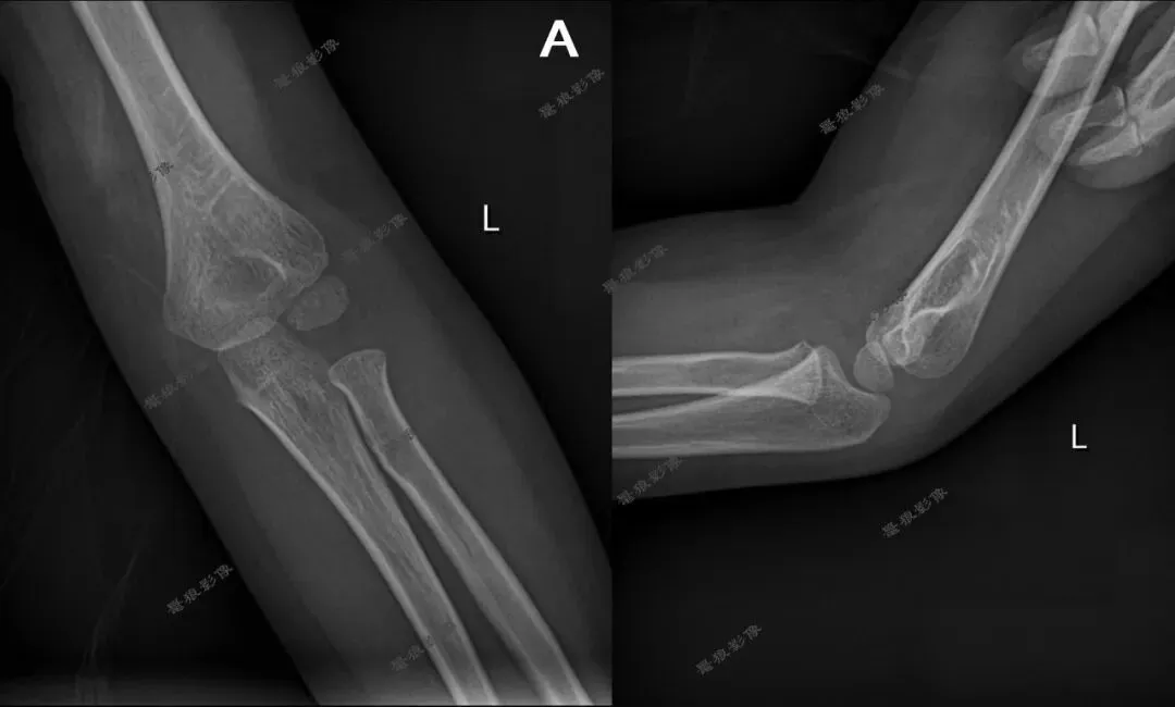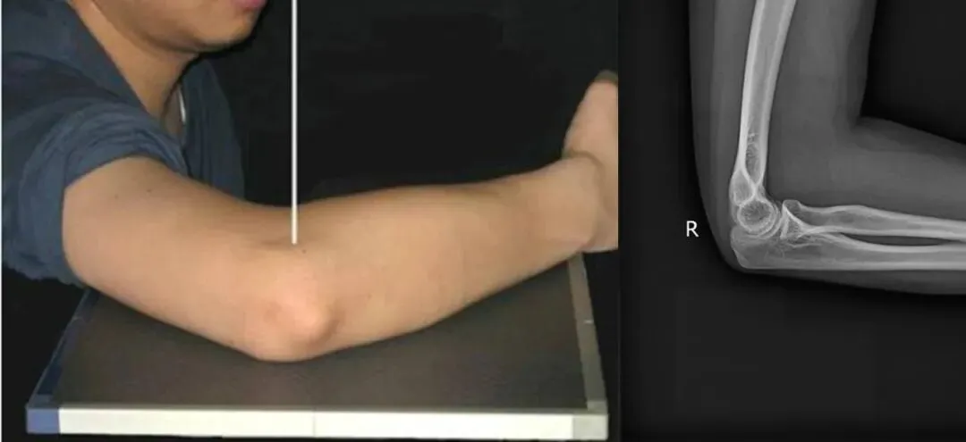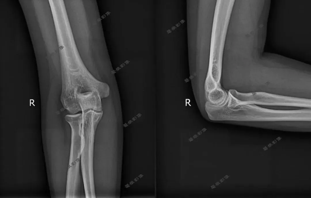 (2)尺骨与肱骨的关节间隙显示明确、锐利;