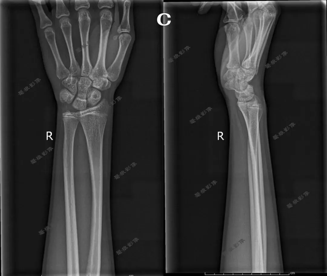 (1)影像显示桡骨、尺骨、腕关节和(或)肘关节侧位影像;