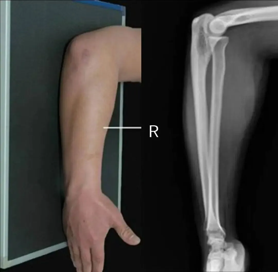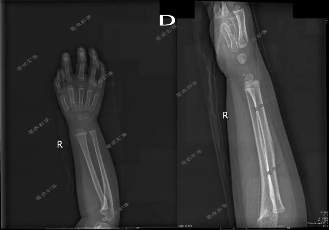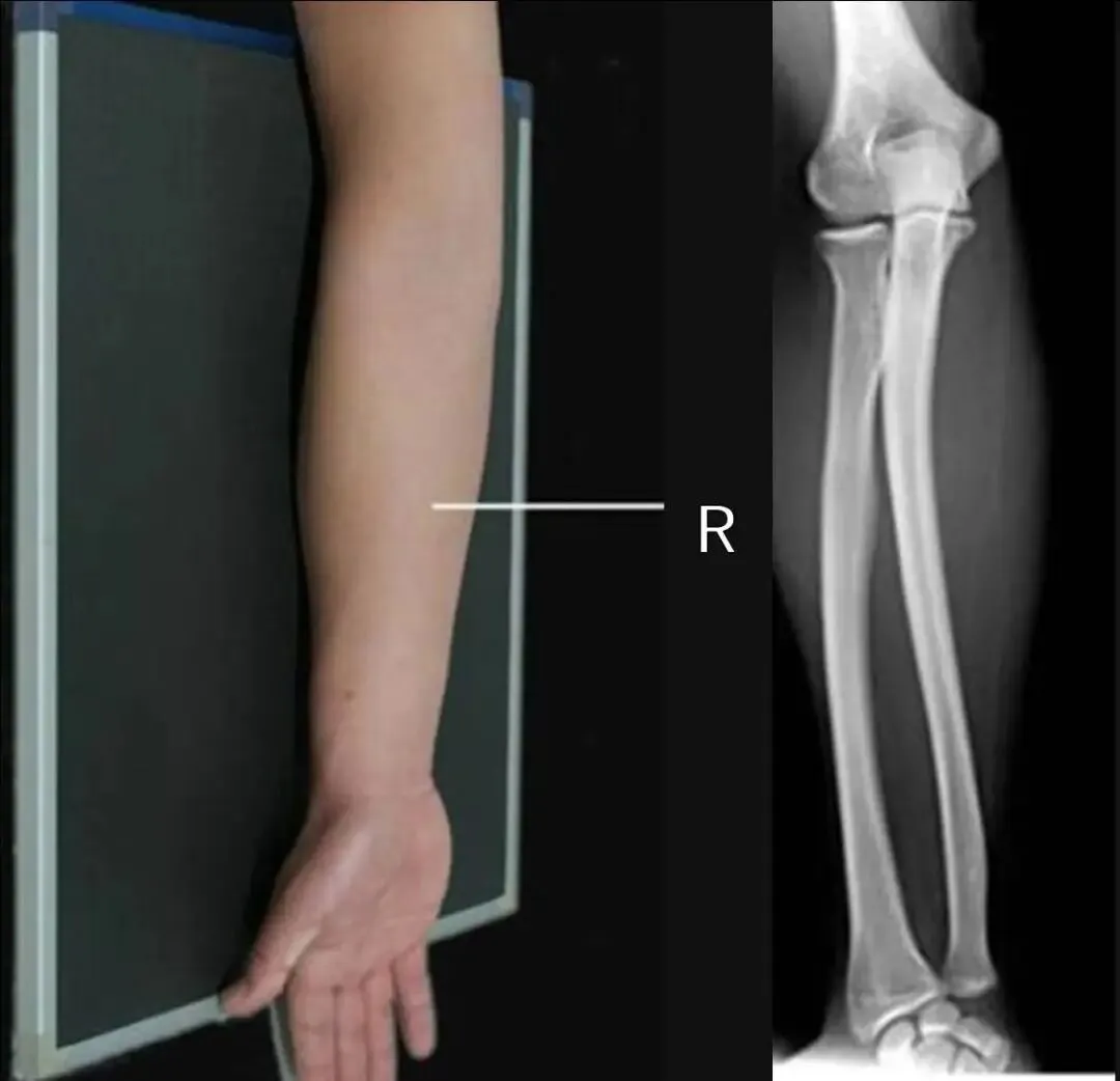 (2)布局合理,图像包括腕关节和(或)肘关节,至少应包括一个关节,桡尺骨呈侧位影像;
