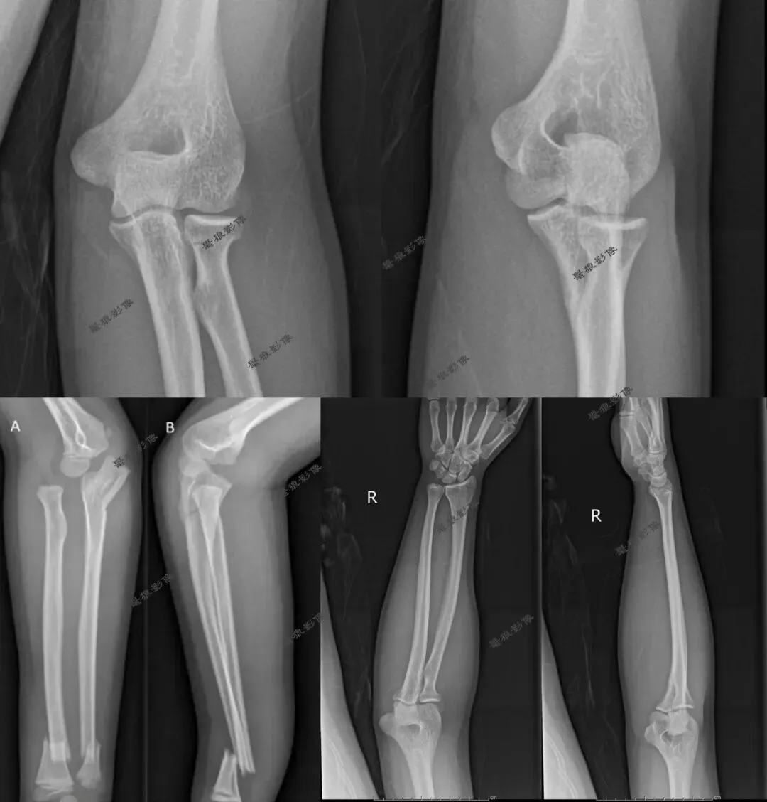 三、假如说病人是靠近腕关节那一侧的桡尺骨有问题时,我们拍摄桡尺骨正侧位也只包括一侧腕关节时,这样的拍摄方法(全部伸直或者全部弯曲)也许不会发现此问题。但是病人是肘关节那一侧的桡尺骨有问题时,我们拍摄桡尺骨必须要包括肘关节时,这样的拍摄方法(全部伸直或者全部弯曲)就有问题啦!桡尺骨侧位片伸直显示不出肘关节侧位,桡尺骨正位片弯曲90°显示不出肘关节正位,我们都没法查看肘关节的解剖细节!