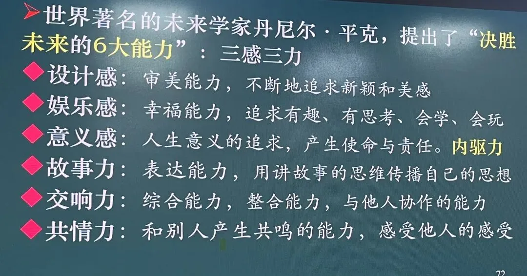 世界著名的未来学家丹尼尔.平克,提出了“决胜未来的6大能力”:三感三力