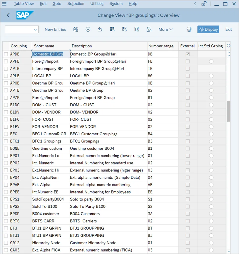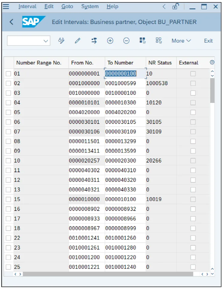 下一步是通过以下菜单路径为客户组创建并分配编号范围:财务会计 • 应收账款和应付账款 • 客户账户 • 主数据 • 客户主数据创建准备 • 为客户账户组分配编号范围。如下图所示,编号范围已分配给客户组。要定义编号范围,请按照以下菜单路径操作:财务会计 • 应收账款和应付账款 • 客户账户 • 主数据 • 客户主数据创建准备 • 为客户账户创建编号范围。如下图所示,客户的编号范围对象是 DEBITOR。点击“区间”按钮来更改编号范围。如下图所示,你可以在分配给客户组的编号范围的“起始编号”和“结束编号”字段中维护值。对于我们之前分配的范围 02,编号从 0001000000 开始,我们的客户账户将按此编号。下一步是通过以下菜单路径定义业务伙伴组及其编号范围:跨应用组件 • SAP 业务伙伴 • 业务伙伴 • 基本设置 • 编号范围和分组 • 定义分组并分配编号范围。下图展示了业务伙伴组及其分配的编号范围。这些编号范围确定创建业务伙伴时分配的编号。这个编号与由客户组控制的客户编号是不同的对象。不过,一个最佳实践是分配相同的编号范围,以便业务伙伴编号和客户编号相同。要创建分配给业务伙伴组的编号范围,请按照以下菜单路径操作:跨应用组件 • SAP 业务伙伴 • 业务伙伴 • 基本设置 • 编号范围和分组 • 定义编号范围。如下图所示,定义要分配给业务伙伴组的编号范围。现在,你需要配置 CVI。与供应商账户一样,CVI 提供业务伙伴和客户之间的集成。通过以下菜单路径为业务伙伴配置了同步控制:跨应用组件 • 主数据同步 • 同步控制 • 同步控制 • 在对话框中激活平台对象的 PPO 请求。现在,让我们通过以下菜单路径配置业务伙伴和客户之间的链接:跨应用组件 • 主数据同步 • 客户/供应商集成 • 业务伙伴设置 • 客户集成设置 • 设置从业务伙伴到客户方向的 BP 角色类别。下图展示了与客户相关的业务伙伴角色列表。双击 FLCU00,这是财务客户的业务伙伴角色。如下图所示,选择“基于客户”单选按钮。此步骤表明,对于这个业务伙伴角色,必须有一个客户。然后,当你创建或更改此角色的业务伙伴时,系统会自动在财务会计中创建或更改具有相关数据的客户。然后,你必须通过以下菜单路径配置相反方向的集成,即从客户到业务伙伴:跨应用组件 • 主数据同步 • 客户/供应商集成 • 业务伙伴设置 • 客户集成设置 • 定义从客户到 BP 方向的 BP 角色。从顶部菜单中选择“新条目”,并将相关客户组与业务伙伴角色链接起来,如下图所示。然后,当你处理具有相关账户组的客户时,系统也会更新分配给该客户组的业务伙伴角色中的业务伙伴。你若喜欢,点个❤️谢先👇