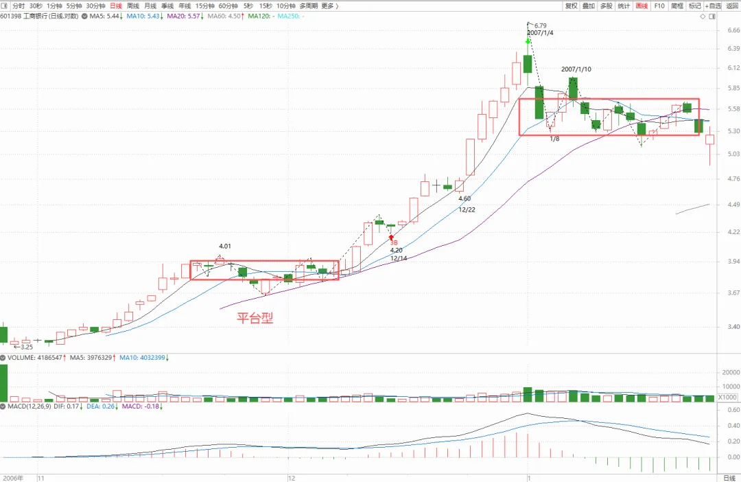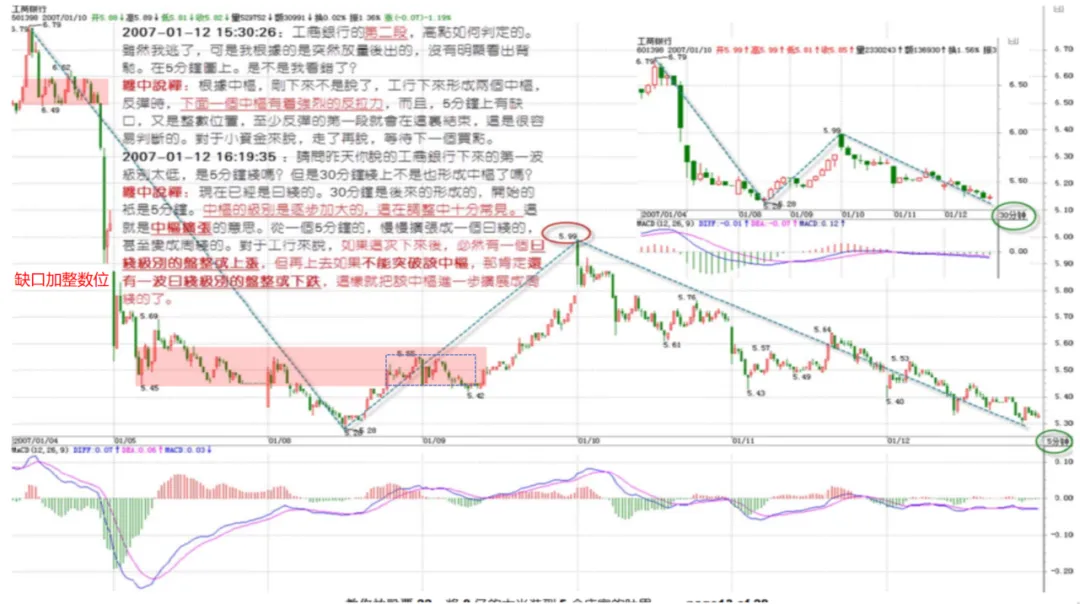 9、本节课后答疑中有个对工行的实例,说了中枢形态的交替原则,具体缠师没有解释,但是可以从这个图形中感受下: