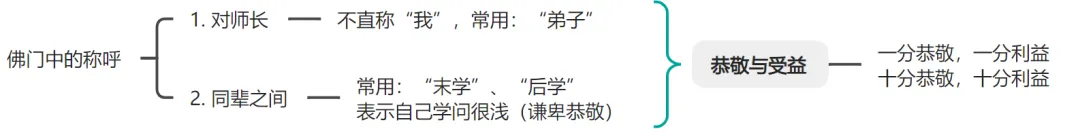 我们在佛门通常不会直接的称呼自己为“我”,而是常用“弟子”、“后学”、“末学”等称呼自己。在师父面前一直讲“我”,其实是很不礼貌的,所以通常用“弟子”。