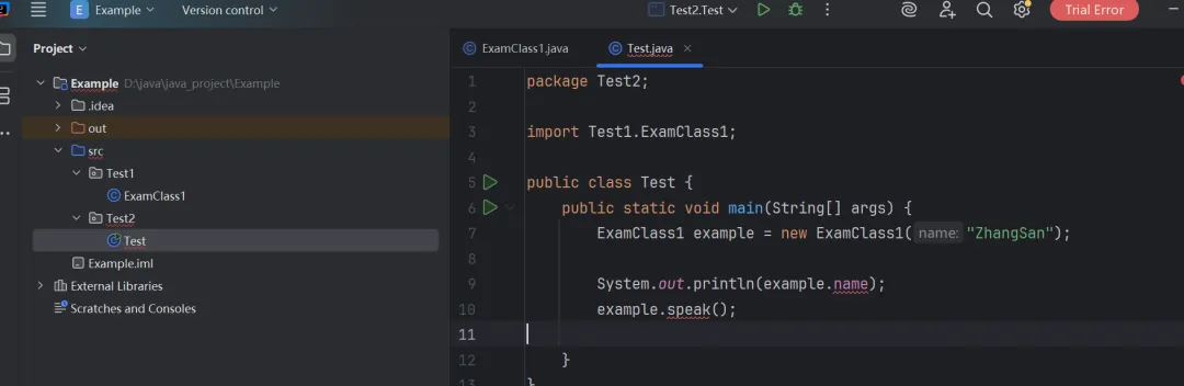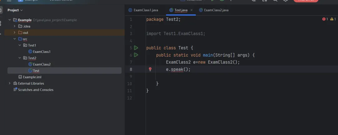 请不要研究这种情况,在我尝试时发现,即使Test和ExamClass1不在一个Module里,但在不声明包的情况下,仍然可以调用,这是一个很混乱的情况。