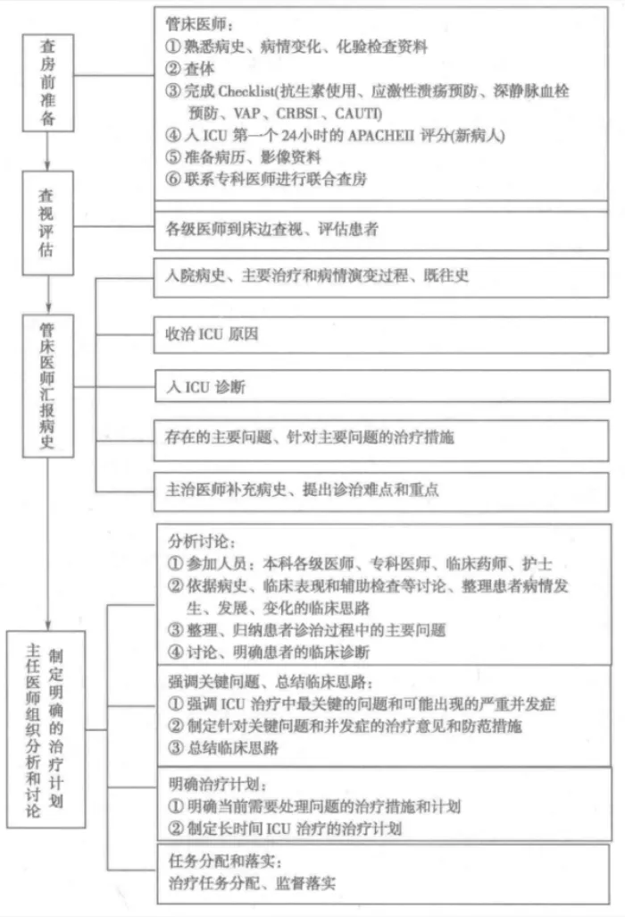 ICU查房必须高效、全面、以患者为中心。可整合 “五环节架构”和“核查清单”思维。